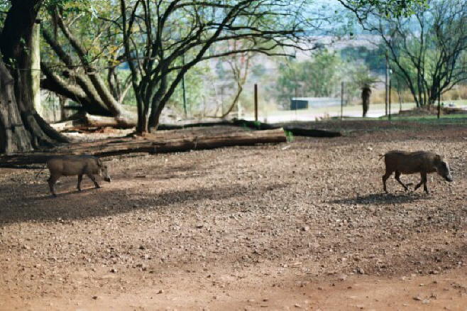 Mlilwane: Warzenschweine im Camp.Mlilwane: Warthogs at the camp.