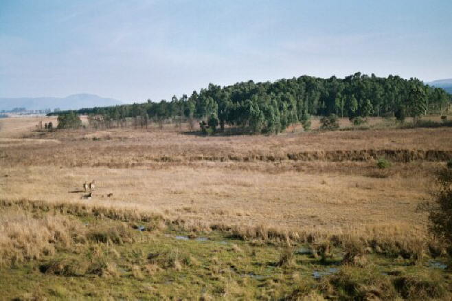 Im Mlilwane-Reservat. Links sind Zebras erkennbar.Mlilwane Reserve. Zebras can be seen to the left.